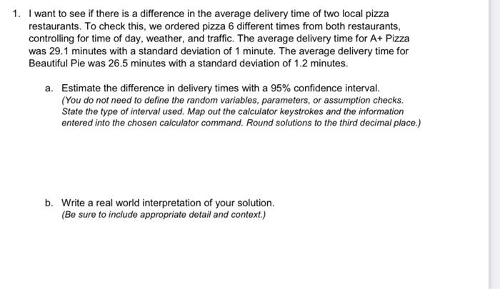 Solved 1. I want to see if there is a difference in the | Chegg.com