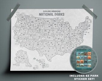National Park Travel Map W/ 63 National Park Stickers Etsy